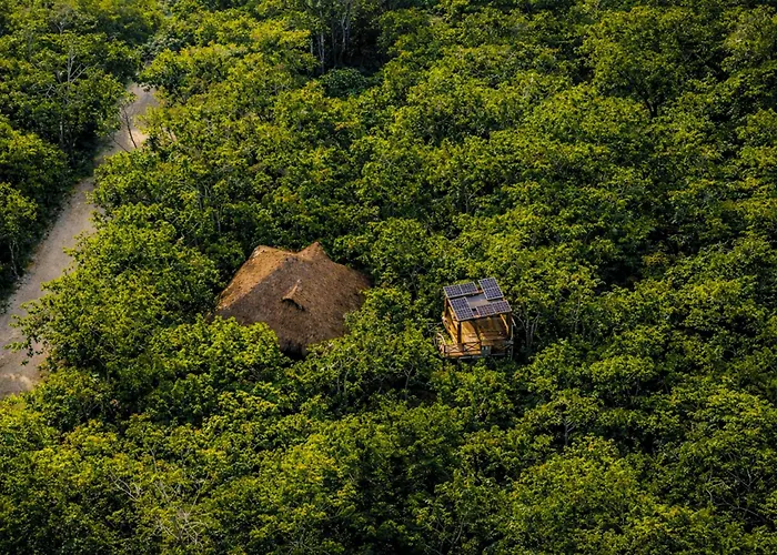 Situata a 3 km dal Jungle Place, la Hotel Treehouse Tulum H2Ojos invita gli ospiti a praticare snorkeling, immersioni ed equitazione nella zona. Dotato di Wi-Fi e un parcheggio privato gratuito, il campeggio si trova a una distanza di 4 km da Chan Chemuyil.